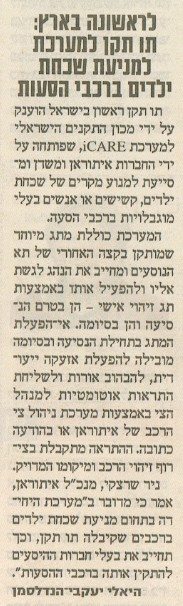 לראשונה בארץ: תו תקן למערכת למניעת שכחת ילדים ברכבי הסעות
