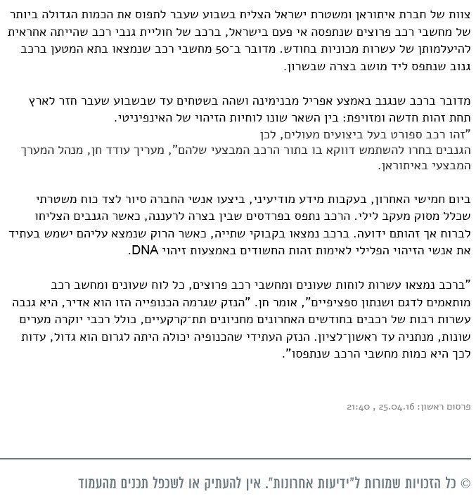 שיא נגד גנבים Posted on 25 באפריל 201626 במאי 2025 by EladAdmin שיא נגד גנבים פורסם על ידי: ידיעות אחרונות