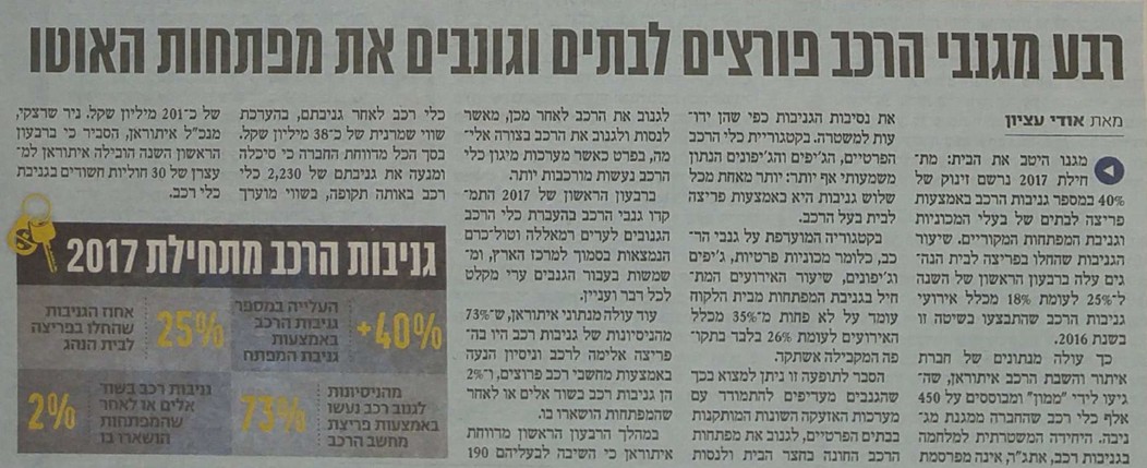 רבע מגנבי הרכב פורצים לבתים וגונבים את מפתחות האוטו Posted on 12 באפריל 201726 במאי 2025 by EladAdmin רבע מגנבי הרכב פורצים לבתים וגונבים את מפתחות האוטו פורסם על ידי: ידיעות אחרונות