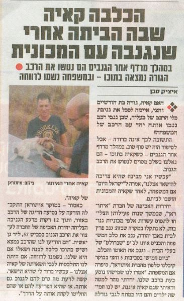 הכלבה קאיה שבה הביתה אחרי שנגנבה עם המכונית Posted on 22 ביולי 201926 במאי 2025 by EladAdmin הכלבה קאיה שבה הביתה אחרי שנגנבה עם המכונית פורסם על ידי: ישראל היום